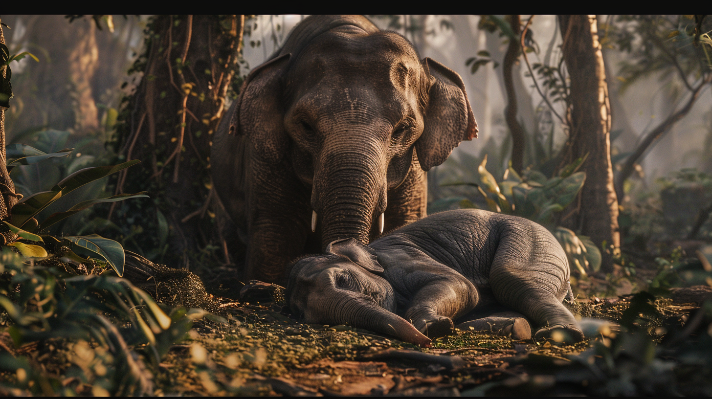 - 어미 코끼리는 무려 3일 동안 먹지도 않고 새끼 곁을 지킴